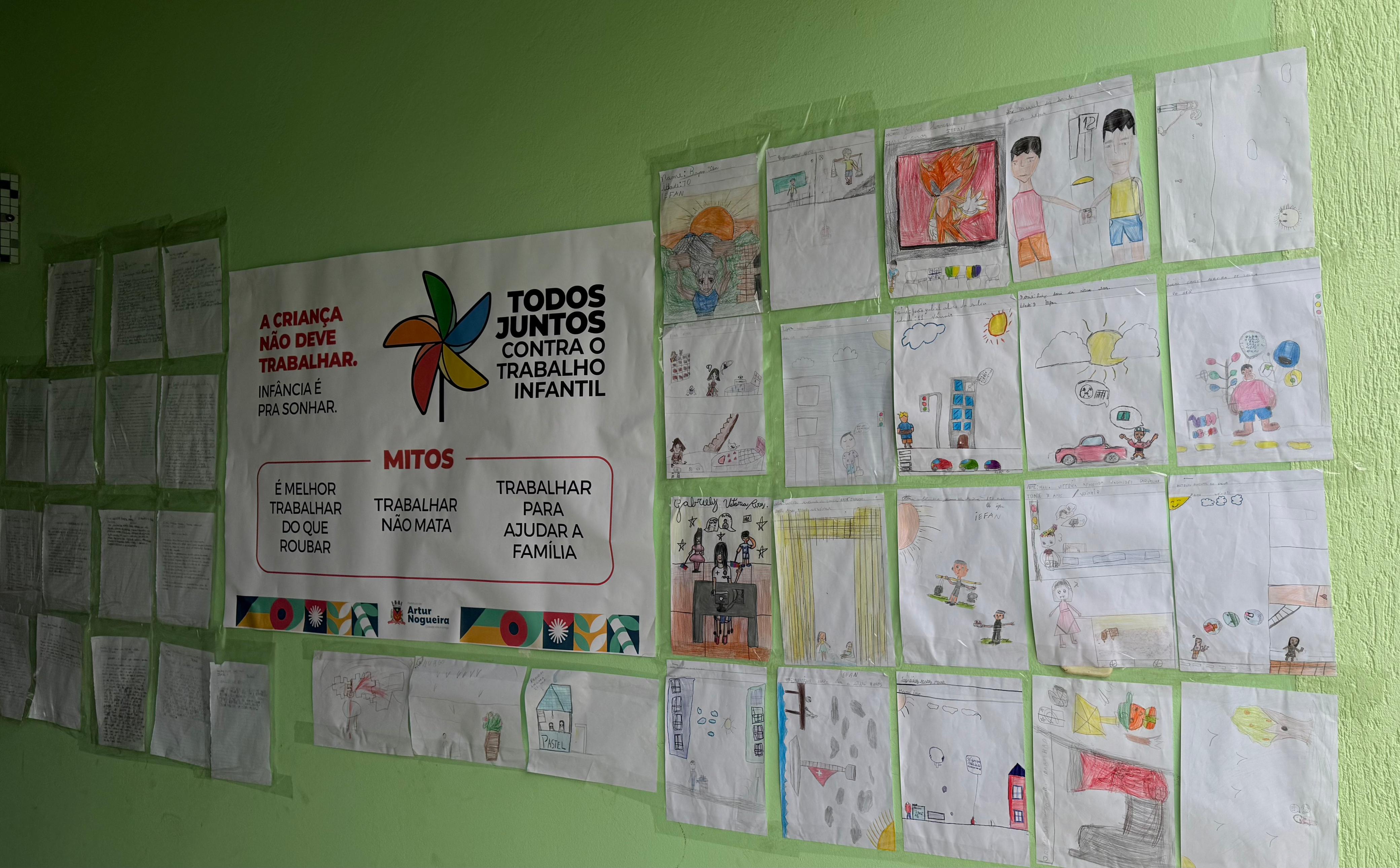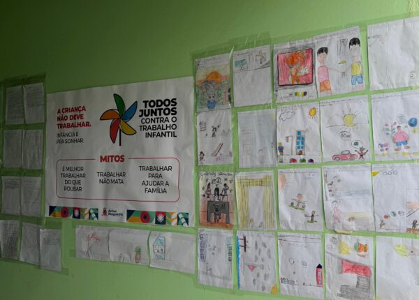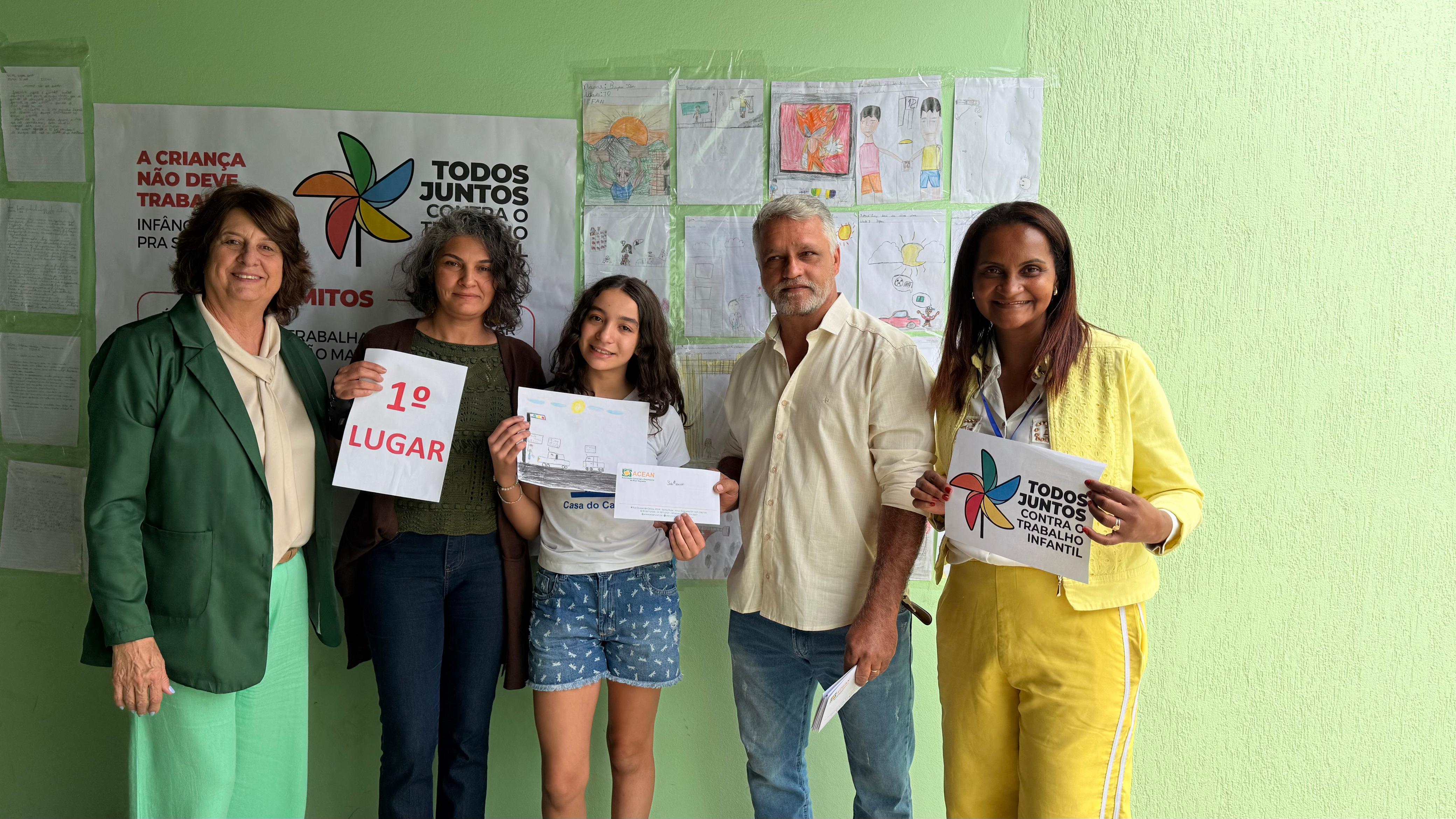 Durante o concurso, os participantes puderam refletir sobre os prejuízos que o trabalho infantil causa ao desenvolvimento físico, emocional e social, expressando suas ideias por meio de desenhos e textos.