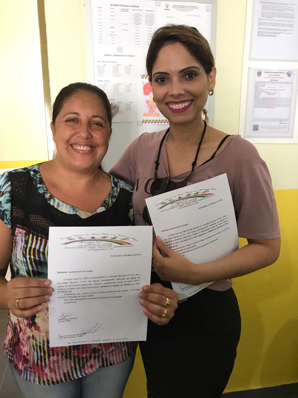 Com as vendas foi possível juntar o valor de R$ 7.375,00. O valor foi dividido ao meio (R$ 3.687,50) e entregue às duas entidades.