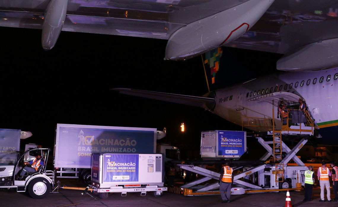 As vacinas prontas foram fabricadas pelo Instituto Serum, na Índia, e eram aguardadas desde sábado (16), mas tiverem atraso no envio por questões internas da Índia.