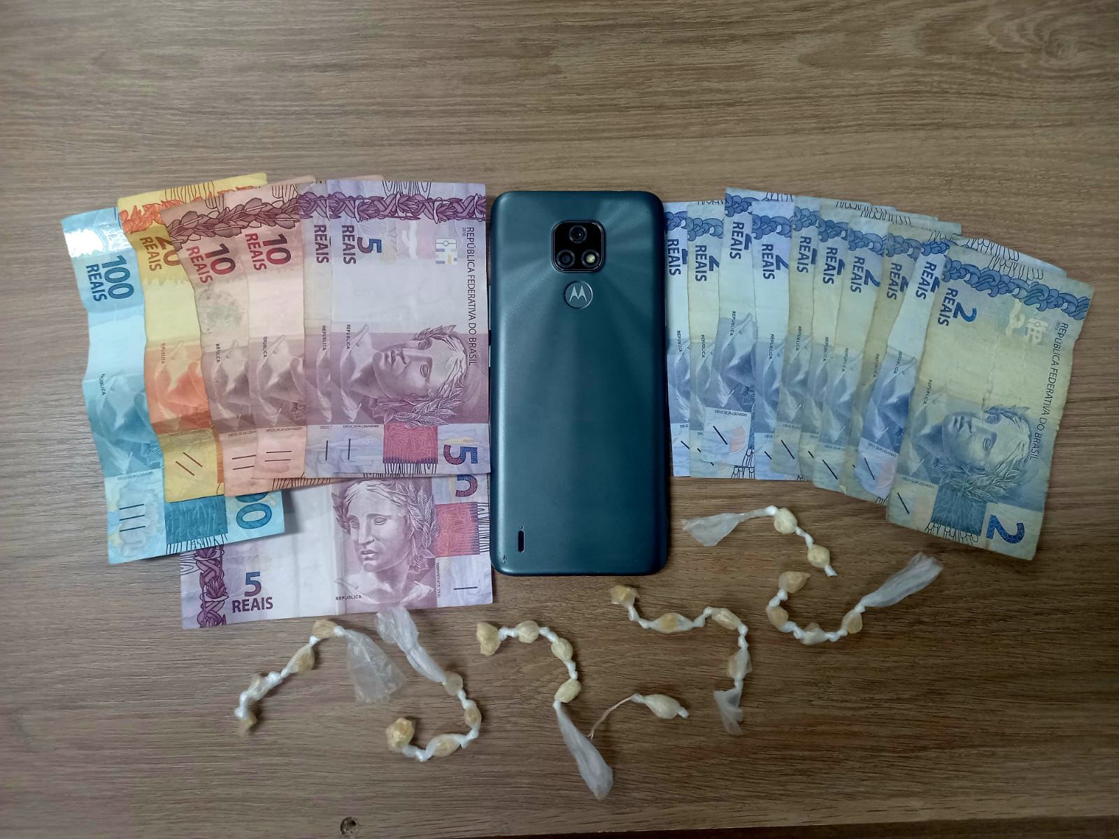 Durante a ação, foram apreendidas 23 pedras de crack, dinheiro e um celular.