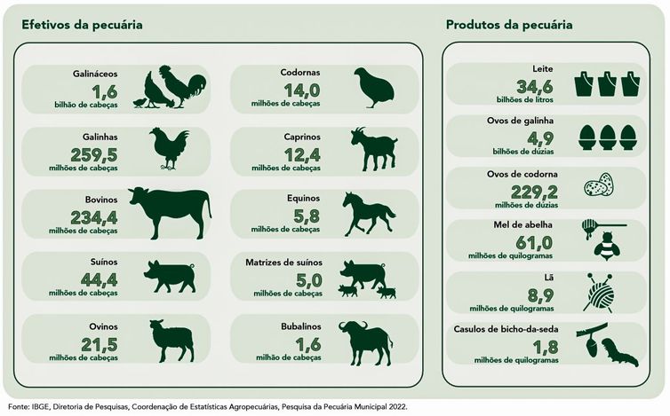Um dos recordes atingidos pelo Brasil foi o número de cabeças de gado. O país terminou 2022 com 234,4 milhões animais, um crescimento de 4,3% em relação ao ano anterior. Mato Grosso é o maior estado produtor, com 34,2 milhões de cabeças – 14,6% do total nacional.