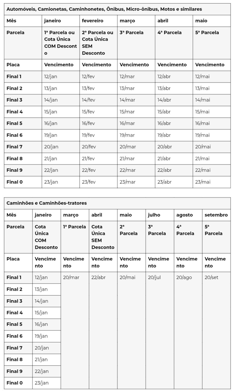 O pagamento segue o final da placa do veículo e pode ser parcelado em até 5 vezes, de acordo com o valor do imposto devido.