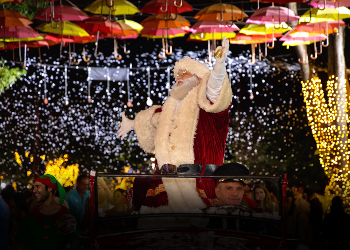 Locais como o Deck do Amor, a Praça dos Coqueiros, a Torre do Relógio e a Rota dos Imigrantes receberão diversas peças decorativas. O município contará ainda com mais de 140 quilômetros de cordões de LED e 4 mil unidades de cascatas de luz instalados em troncos e galhos de árvores da região central, além de 40 guirlandas iluminadas.