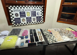Material apreendido inclui porções de cocaína, crack, maconha, ice e ecstasy.