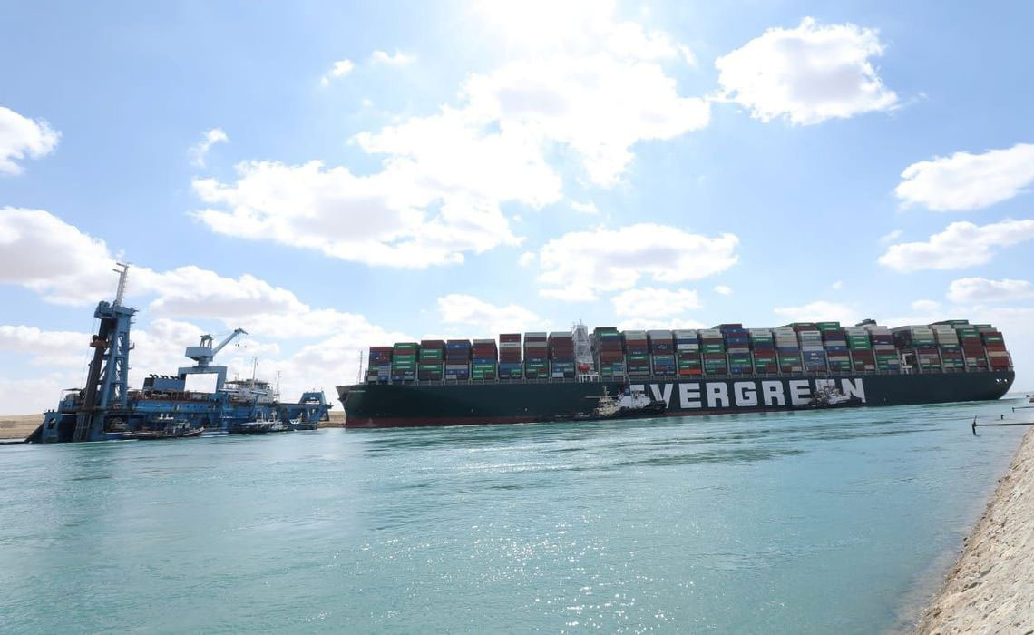 O porta-contêineres tem o nome de Ever Given é é propriedade da empresa japonesa Shoei Kisen, mas é operado pela Evergreen Marine Corp, sediada em Taiwan. O navio saiu da China e era esperado em Roterdã, nos Países Baixos, na próxima terça-feira (30).