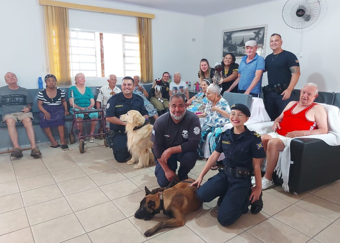 No último dia 1º, o Projeto Guarda Pet Terapia – iniciativa da Prefeitura de Artur Nogueira, por meio da Secretaria de Segurança e da Guarda Civil Municipal – levou alegria e emoção aos idosos da Aidan.