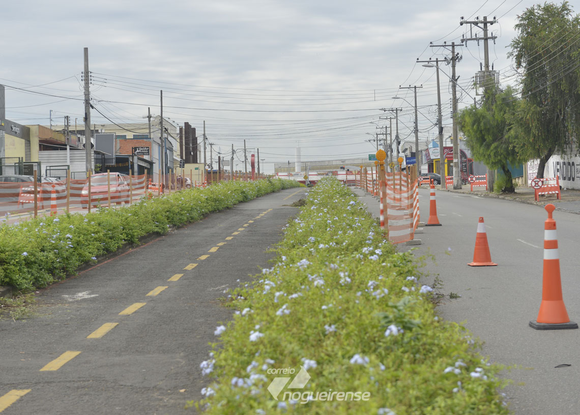 A ciclovia sai do canteiro central e será substituída por ciclofaixas nas laterais da via, onde não será permitido o estacionamento de veículos. Todo o calçamento no acesso aos imóveis será refeito e padronizado com piso intertravado e instalação de pisos táticos nas calçadas, seguindo as normas de acessibilidade.