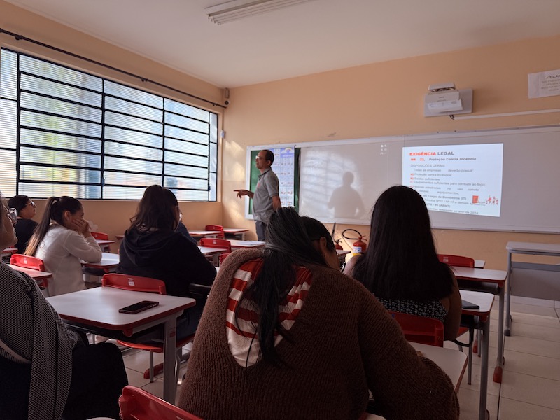 Durante o treinamento, os participantes receberam orientações teóricas e práticas sobre como agir diante de um princípio de incêndio, utilizar extintores corretamente, identificar rotas de fuga e realizar evacuações seguras, preservando a integridade de todos os envolvidos – especialmente das crianças.