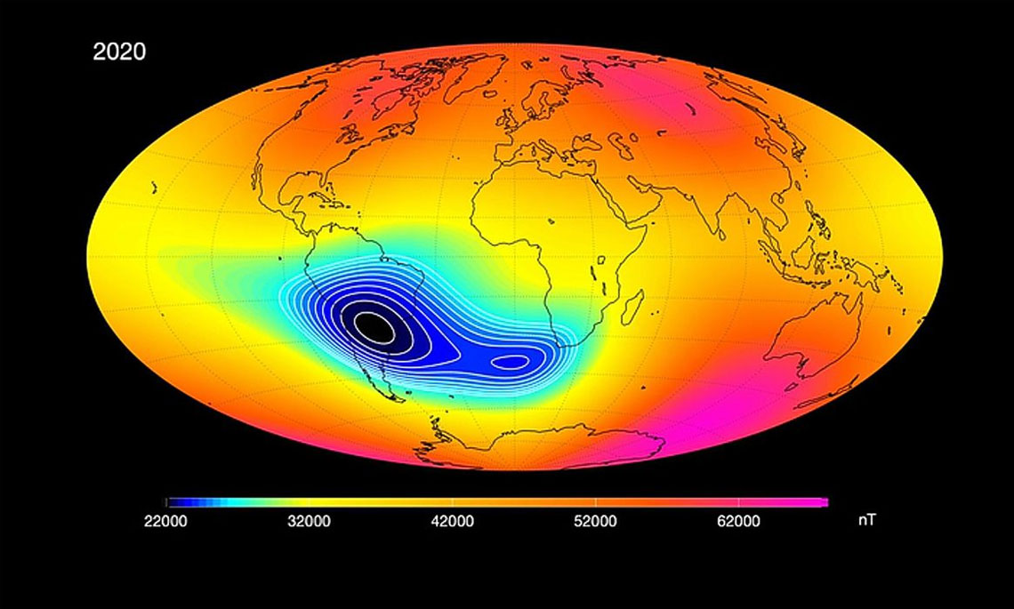 A ESA já alertou para o crescimento gradativo da Amas entre 1970 e 2020. De acordo com estudo publicado no ano passado, o campo magnético da Terra perdeu 9% de força nos últimos 200 anos, sendo o maior impacto na região da anomalia.