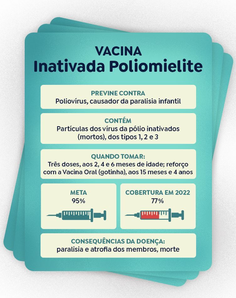 Segundo o Sistema de Informações do Programa Nacional de Imunizações (SI-PNI), as doses previstas para a vacina inativada contra a pólio atingiram a meta pela última vez em 2015, quando a cobertura foi de 98,29% das crianças nascidas naquele ano.