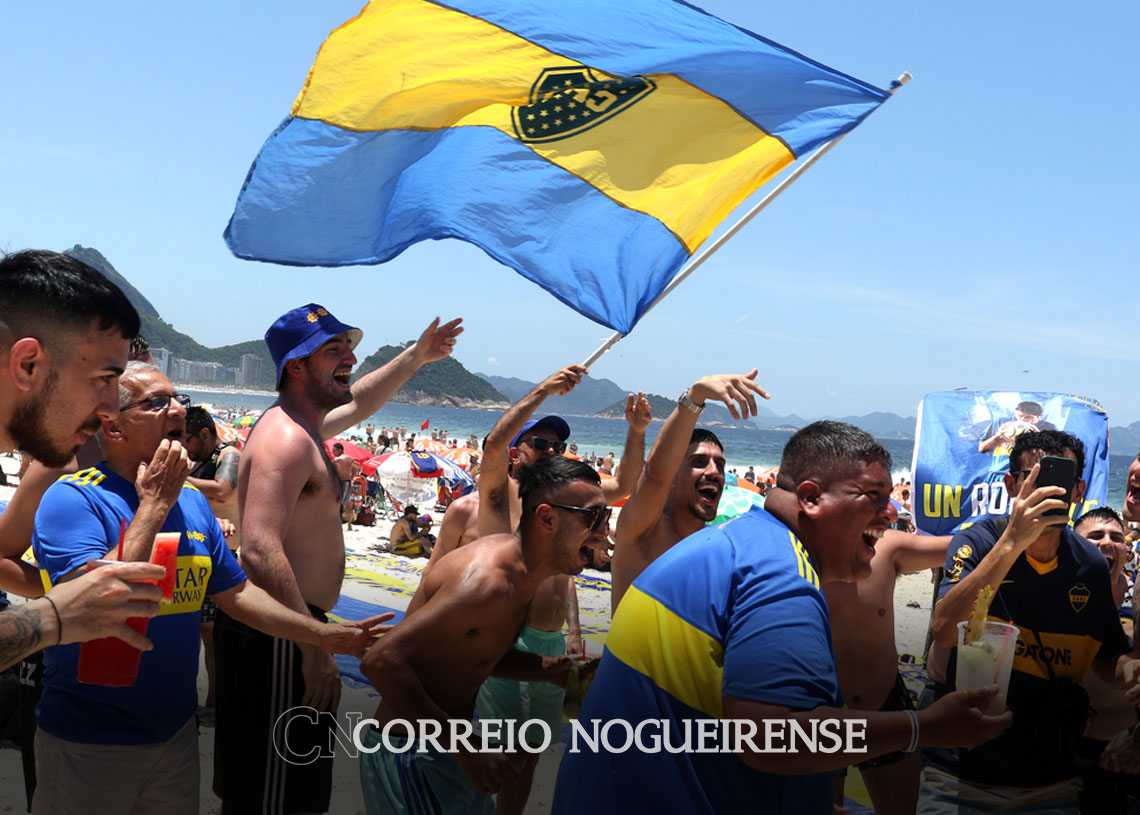 O Posto 5 da Praia de Copacabana, na zona sul da cidade, virou local de encontro de argentinos que estão na cidade para a final da Taça Conmebol Libertadores entre o Fluminense e o Boca Juniors, neste sábado (4), às 17h, no Maracanã. Nesta sexta-feira (3), o azul e o amarelo, cores do clube argentino, são vistas por todo lado, em camisas, chapéus, bonés, bandeiras e faixas estendidas na areia. Ambulantes brasileiros, inclusive, aproveitam o movimento para vender essas peças para os torcedores.