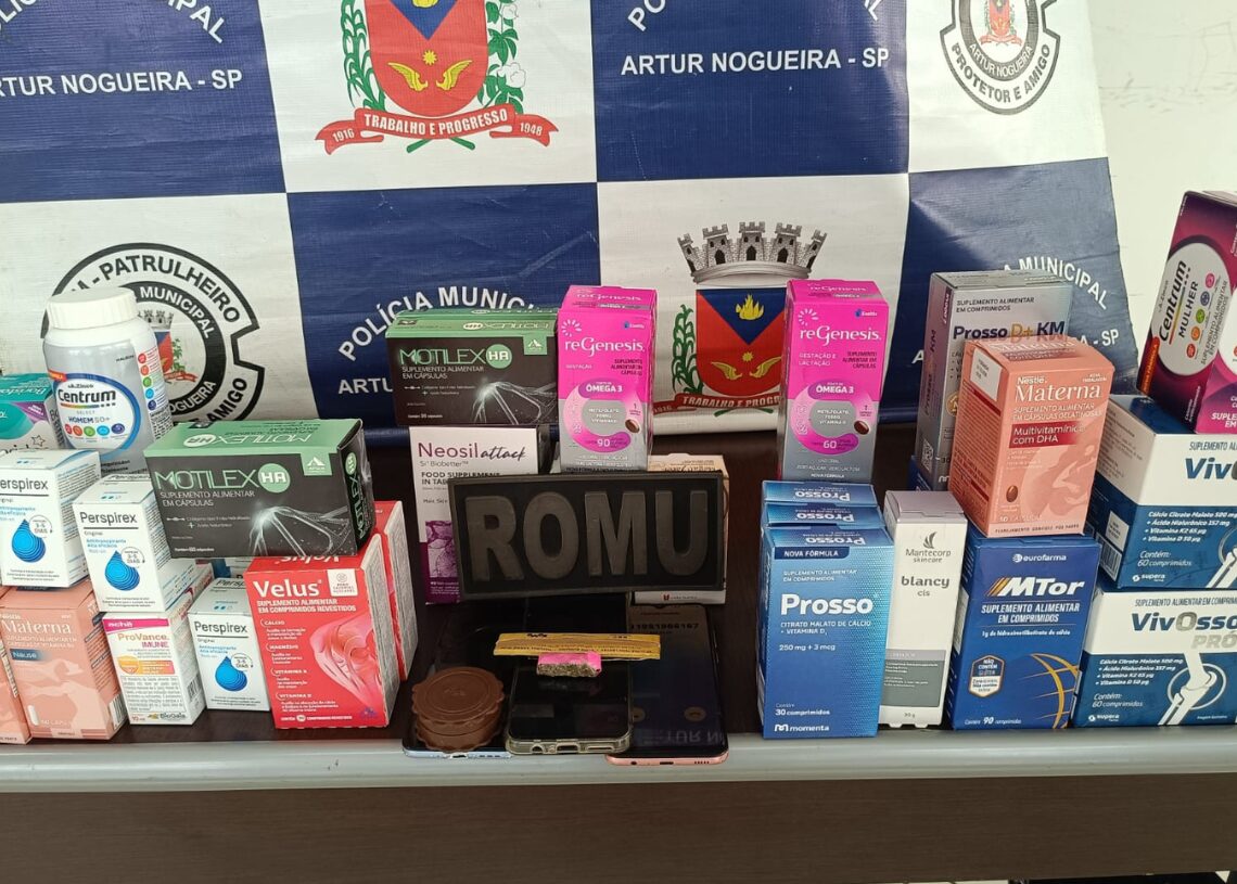 Três pessoas foram detidas pela Guarda Civil Municipal (GCM) de Artur Nogueira na tarde desta terça-feira (28) após serem flagradas com dezenas de caixas de suplementos e vitaminas, além de uma porção de maconha e celulares. A abordagem ocorreu na Avenida Fernando Arens, próximo ao Centro da cidade.